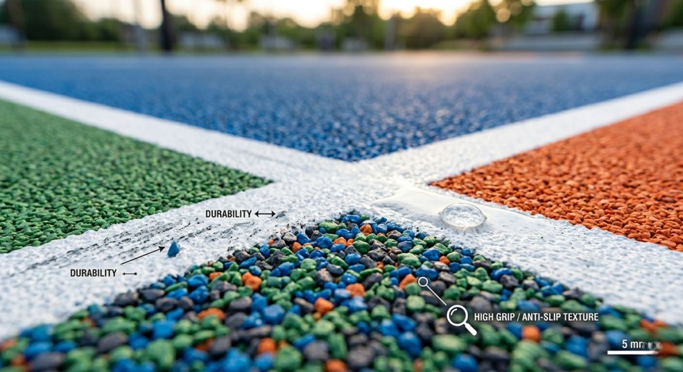 👉 Acrylic flooring is one of the most widely used outdoor sports surfaces in India due to its durability and affordability.