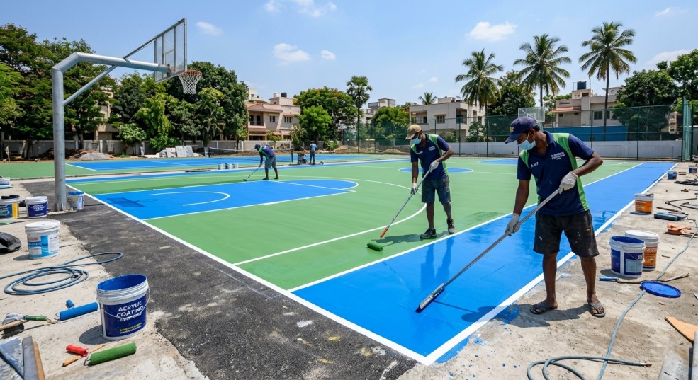 🏟️ Step – by – Step Process of Installing Acrylic Sports Flooring